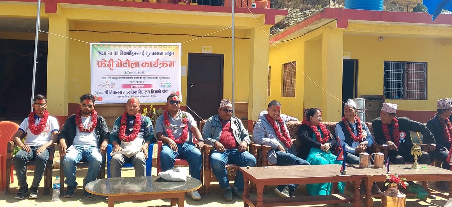 विद्यालयले बिहिबार होलि विशेष कार्यक्रम सँगै आफ्नो विद्यालय बाट कक्षा १० मा अध्ययनरत आगामी एसईईमा सहभागि विद्यार्थीहरुलाई फेरी भेटौला कार्यक्रम सम्पन्न गरेको हाे । हिमालय माध्यामिक विद्यालयको यो तेस्रो चरणको एसईइ रहेको छ ।